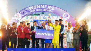 दुई गोलका नायक सन्तोष तामाङ फाइनलका उत्कृष्ट खेलाडी घोषित भए।